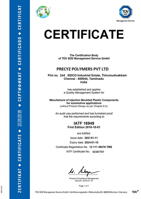 The comprehensive quality systems at PRECYZ POLYMERS right from raw material to in-process to final products ensure compliance with International Standards. Continual improvements and upgradations in our inspection and testing facilities ensure product quality, durability, and reliability. We at PRECYZ POLYMERS place unwavering focus on providing highest quality products and solutions with complete customer satisfaction. Quality is in our DNA and integrated into end-to-end processes.